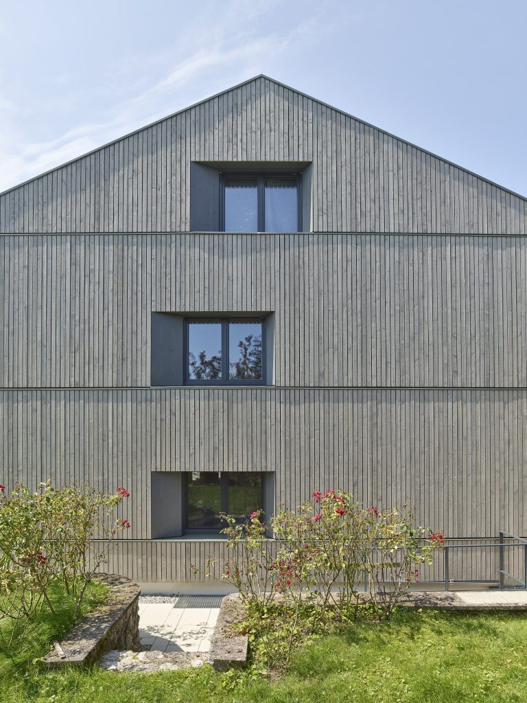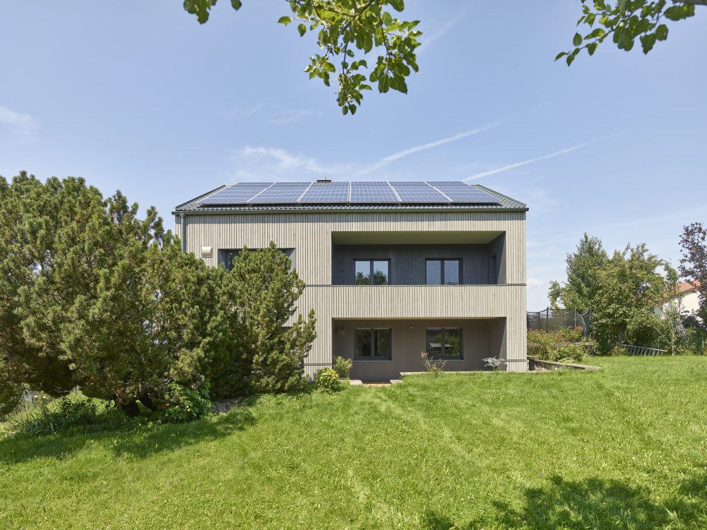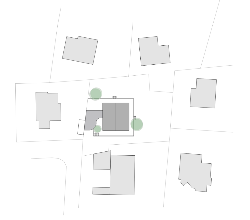 Ein Haus aus den 1960-er Jahren im Voralpenland mit einer verputzten Lochfassade, einem flachen Satteldach mit Dachüberstand und typischen Gestaltungselementen aus der Bauzeit verkauft sich in seiner Erscheinung derzeit unter Wert. Der Zugang zum Gebäude, verbaut durch Garagen ist wenig attraktiv. Im Rahmen einer energetischen Sanierung und einem Ausbau des Dachgeschoßes erhält das Haus ein neues Kleid. Gleichzeitig wird die Zugangssituation und Positionierung der Nebengebäude neu geordnet.